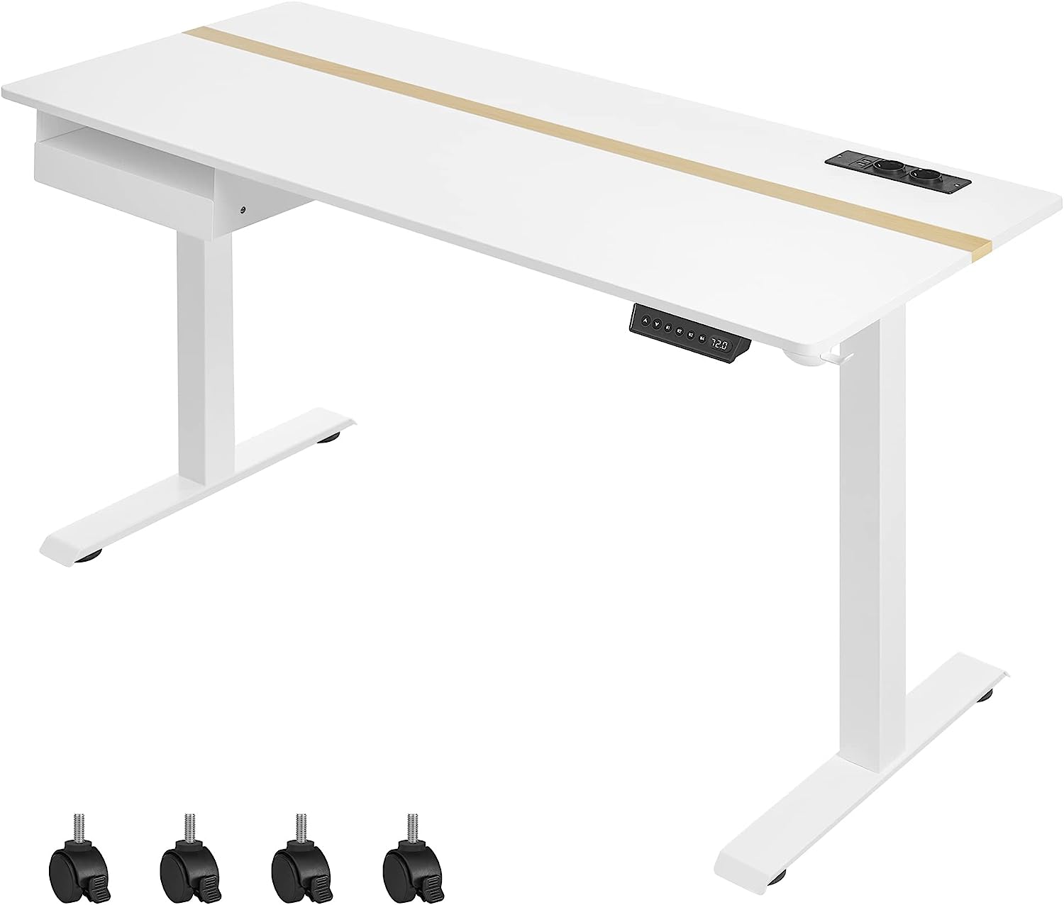 Výškovo nastaviteľný kancelársky stôl, elektrický, so zásuvkou, 72-120x140x60cm