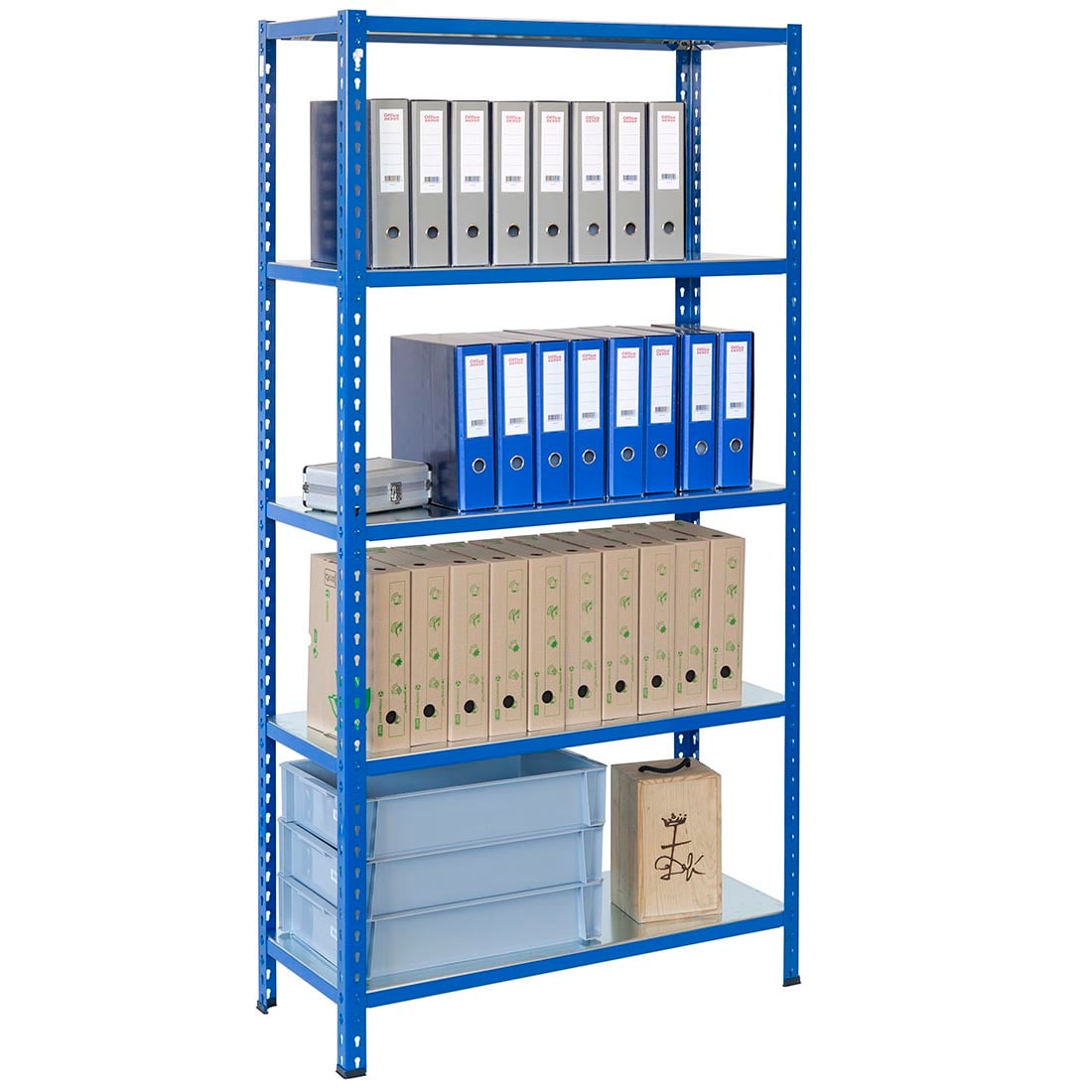 Rozmer: 200x60x30 cm (2000x600x300 mm) Kovový bezskrutkový regálový systém má vysokú nosnosť, na jednu policu až 250 kg. Celková nosnosť regálu je až 1250 kg. Regál zaujme svojim jedinečným zaujímavým sfarbením, modrými stojinami a nosníkmi a zinkovanými policami. Zinkované police sú odolné voči korózií a mechanickému poškodeniu. Produkt je možné pre zvýšenie životnosti upevniť ku stene.