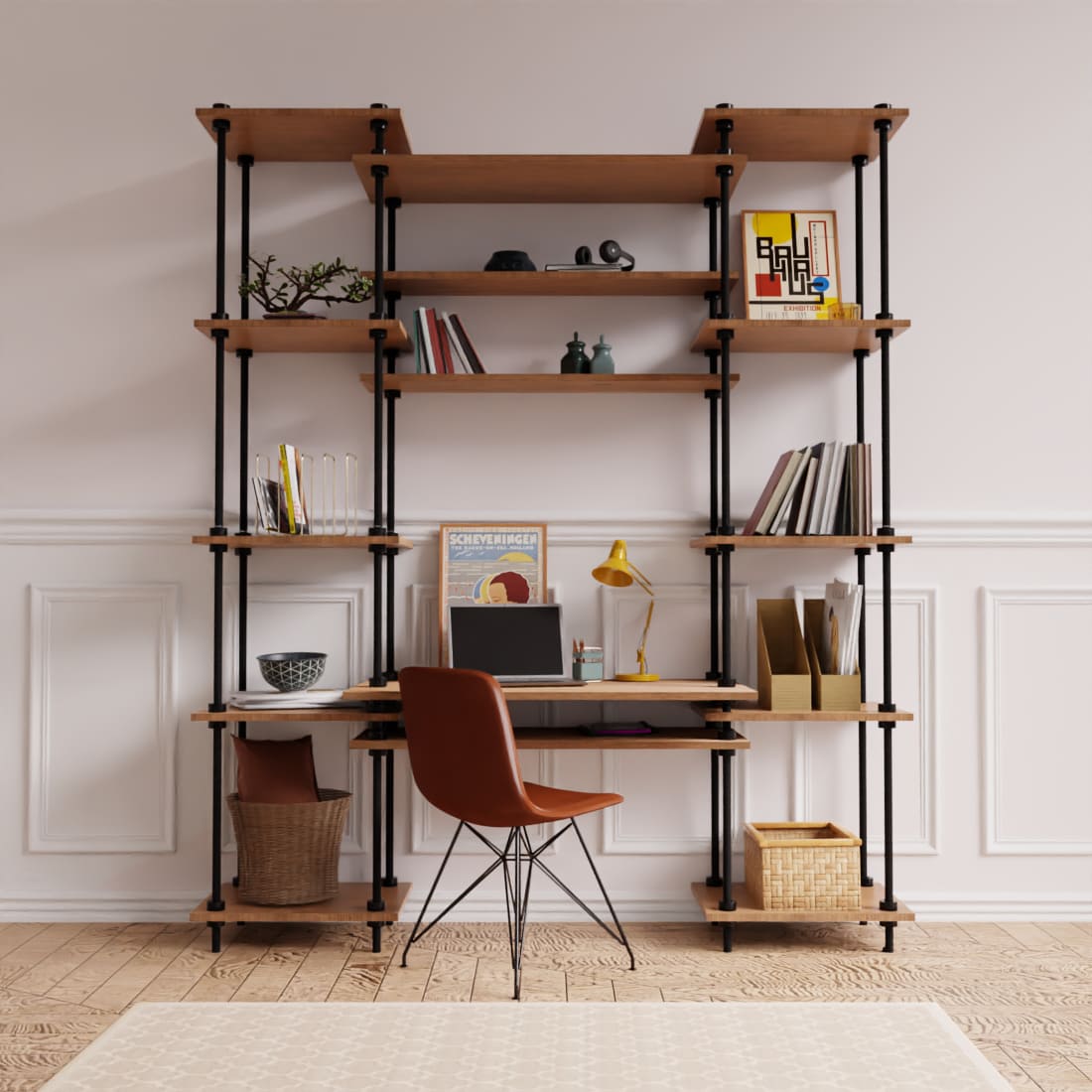 Kombinácia policového a regálového systému s písacím stolom DECO je ideálnou voľbou do kancelárie a každej domácnosti. DECO – Ako názov napovedá, je významným dekoratívnym a estetickým prvkom, ktorý sa hodí takmer všade. Regálový policový systém, zložený z oceľových rúrok a drevených laminovaných políc, nájdete len na eshope Majster Regál. Vyskúšajte dekoratívnu revolúciu aj vo Vašej kancelárii, práci a domácnosti. Industriálny policový regál využijete aj v iných priestoroch, ako len vo vašej domácnosti, fantázii sa medze nekladú. Vaše priestory nebudú len efektívne organizované, ale aj esteticky upravené. To všetko nájdete v našej novej sérii regálov DECO.