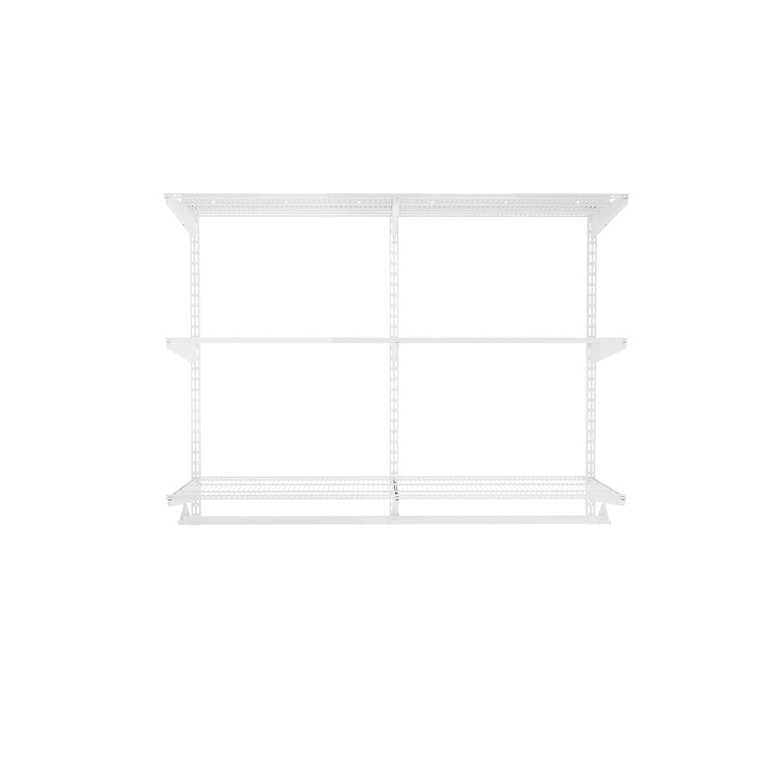 Univerzálny kovový nástenný systém 100 x 120 x 40 cm so 6 drôtenými policami a 2 šatníkovými tyčami vyniká jednoduchou montážou podporenou hornou koľajnicou a jeho zostavenie zaberie iba pár minút. Základom nástennej zostavy sú zvislé upevňovacie lišty s otvormi, do ktorých sa môžu zavesiť trojuholníkové konzoly s drôtenými policami a ďalšie príslušenstvo ako je drôtený kôš, šatníková tyč alebo sušiak na bielizeň.
