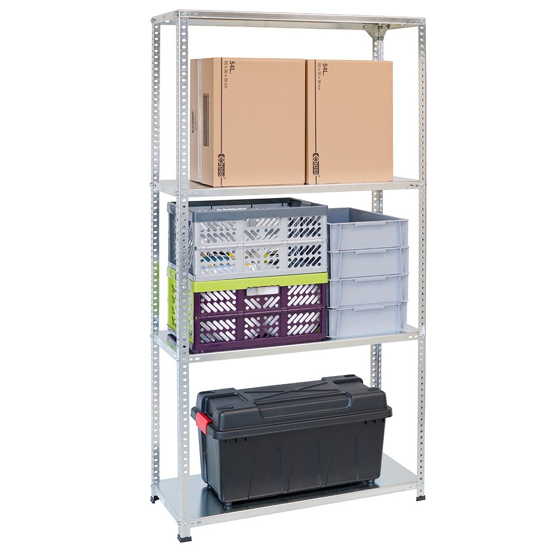 Skrutkový kovový regál 250x100x40 odporúčame využiť napr. v sklade, pivnici, obchode, domácnosti, garáži a pod. Má jednoduchú montáž pomocou skrutiek, ktorú zvládnete sami za pár minút. Jednotlivé komponenty sa montujú za pomoci skrutiek a matíc, pričom police môžete umiestniť do akejkoľvek výšky podľa vlastnej potreby. Pri dvoch a viacerých produktoch je možné priskrutkovať regály k sebe, čím vytvoríte komplexný regálový systém a využijete maximálnu kapacitu voľného priestoru. Ku každému regálu je priložený podrobný obrázkový montážny návod.